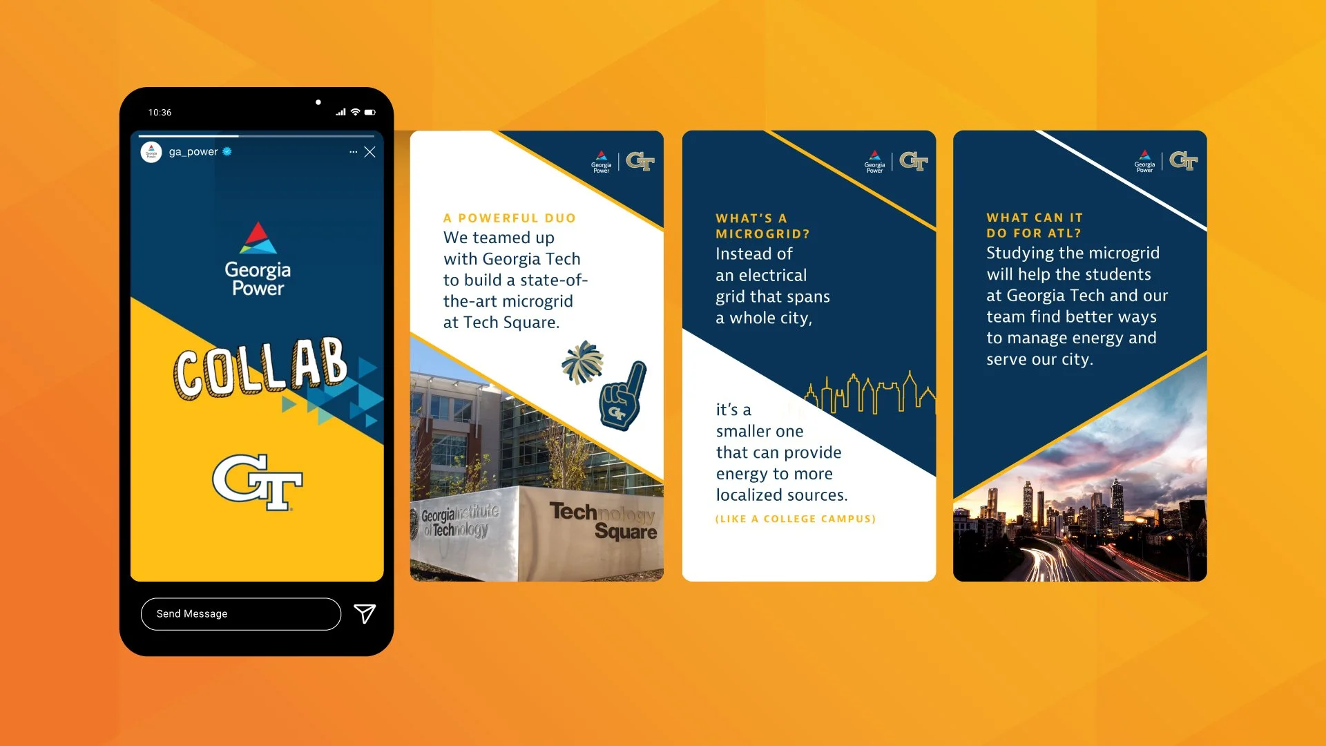 Throughout my time as an art director on the Georgia Power account, I worked on various social campaigns for the brand, both sponsored and organic. From 2020 through 2021, I was able to stretch the brand’s visual identity in creative ways to keep their content fresh, beautiful, and ownable; I created custom illustrations that pushed their style and color palette, provided art direction for branded photography, and crafted elegant layouts with their brand assets. Each campaign was strategically concepted based on extensively researched briefs, and I worked from concept to production, both animating myself and partnering with external animators.